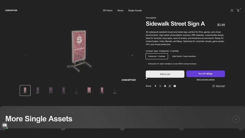 This license is for studios with more than 5 artists. It offers comprehensive coverage for larger teams, allowing unlimited use of our kits on any project. The Enterprise License can be purchased directly through our website to streamline your workflow with ease and efficiency. For a tailored experience and additional assistance, please contact us via the chat for personalized support.